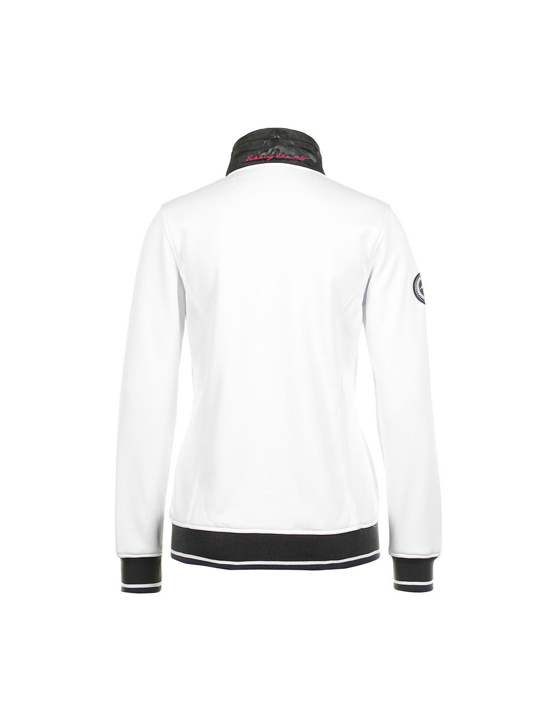 Logo sur l'épaule droite et écriture sur le poignet et la poitrine gauche